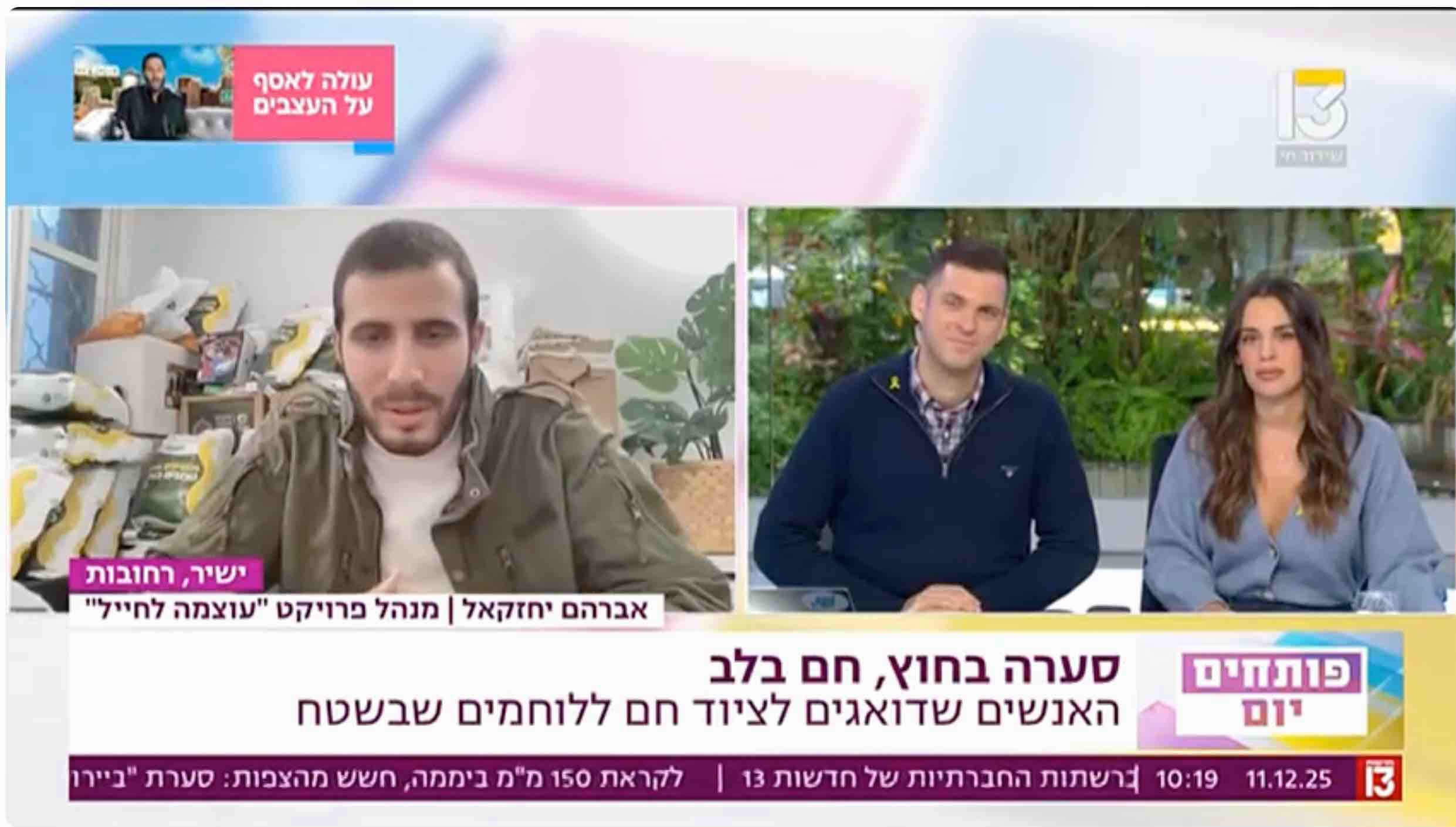 בכל שבוע, אנחנו יוצאים למסע מרגש. עם ריח של על האש ומוזיקה שמחה, אנחנו מגיעים למוצבים הכי מרוחקים, מהצפון ועד הדרום. שם אנחנו פוגשים את החיילים והחיילות שלנו, הגיבורים של המדינה. חבילות היגיינה, שוברי קנייה אישיים ומארזי חורף מחממים הם לא רק ציוד, הם תזכורת חמה שהם לא לבד, שיש להם בית שתומך בהם.